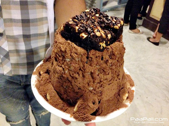 เมนู นี้ 80 ซื้อมาถ่ายรูปเล่นเก๋ๆ น้ำแข็งใสขนาดใหญ่ใส่ผงโอวัลติน ราดด้วยนมข้นหวาน มีท๊อปปิ้งแต่งหน้าเป็น บราวนี่ ล้อมรอบด้วยขนมปังอบกรอบทรงลูกเต๋า